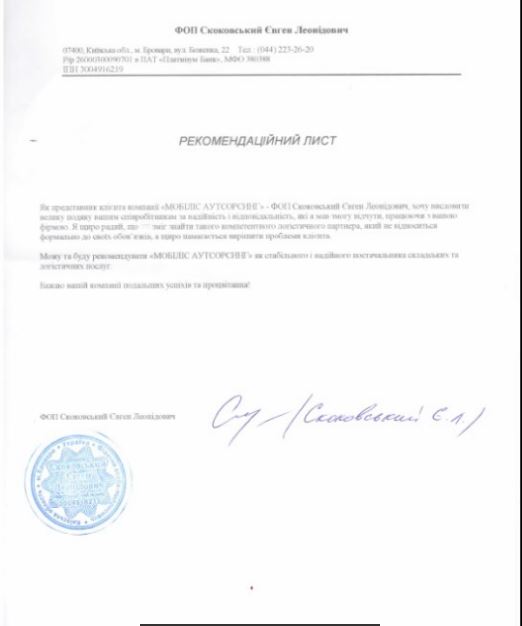 Рекомендацiйний лист вiд ТОВ Фармексiмпостач Отзыв о МОБИЛИС АУТСОРСИНГ от нашего партнёра. Читайте и другие отзывы о МОБИЛИС АУТСОРСИНГ Читать далее